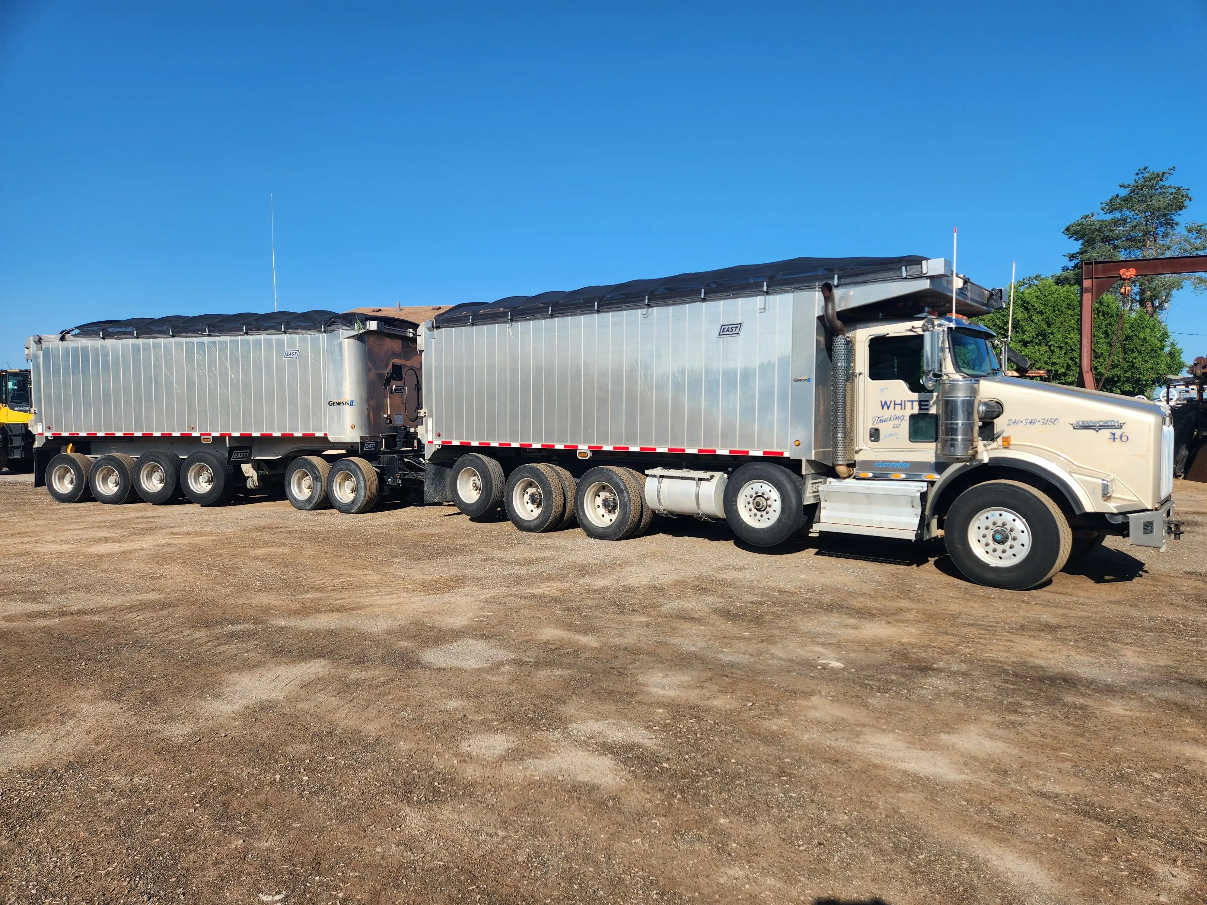 DESCRIPTION 2ND OWNER, STRECHED QUAD AXLE, 2022 EAST ALUMINUM BOX, 3 WAY GATE, LINER, ELECTRIC TARP, TWIN PTO’S, HYDRAULIC COOLER, 3 LINE WET KIT, W/ 2022 MATCHING EAST 12-WHEELER PUP ON AIR RIDE. CAPACITY 49 ½ TON PAYLOAD, 100 CU YD MULCH. CALL FOR MORE INFO